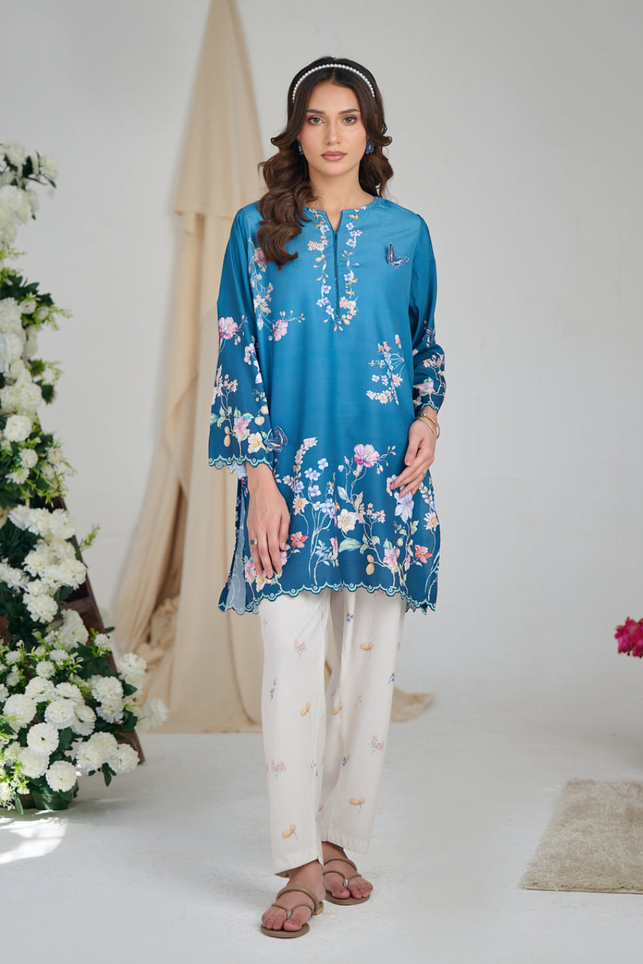 3D cutwork Butterflies appliqués along the Shirt