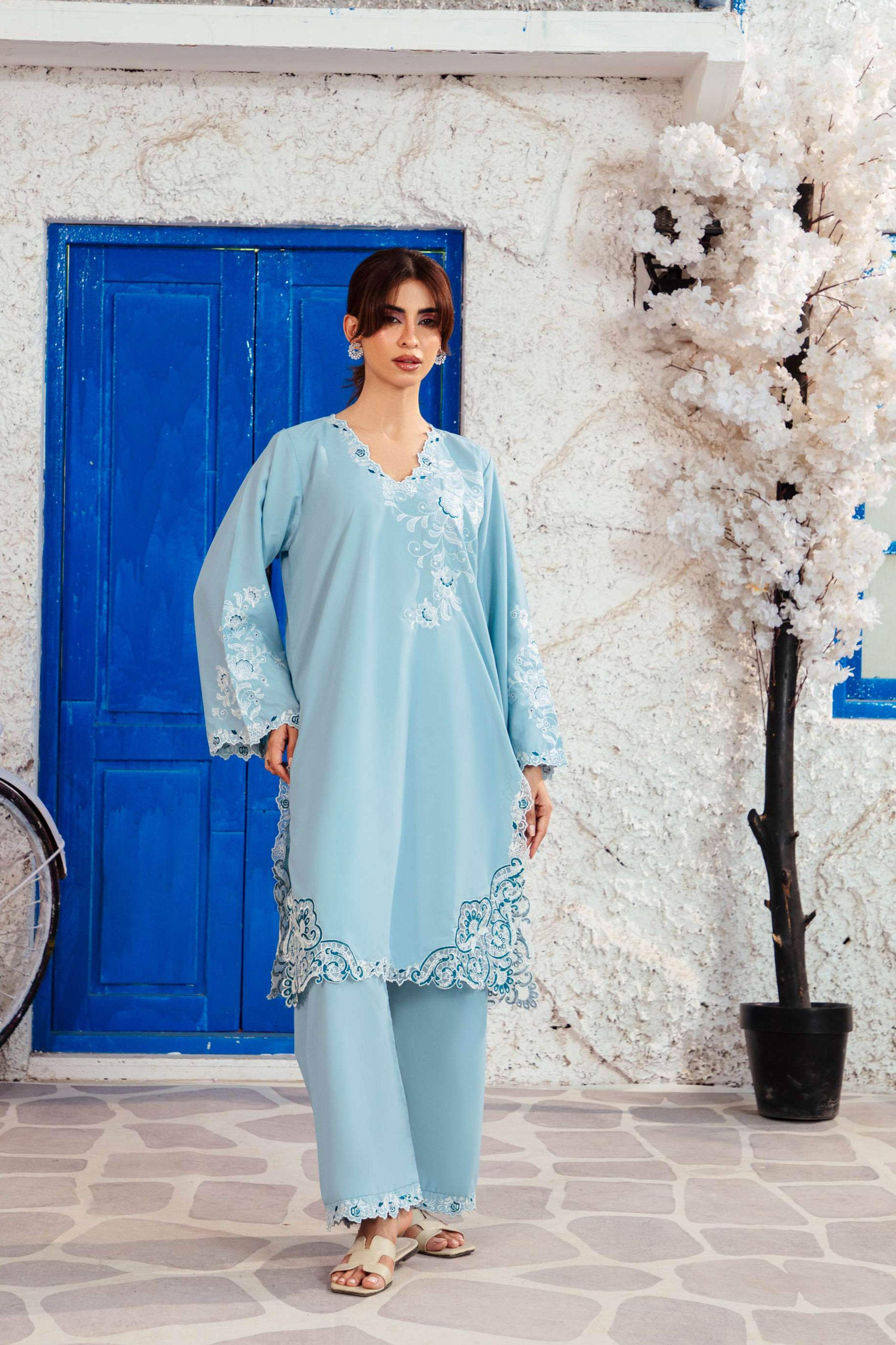 Experience detailed embroidery on smooth blended lawn fabric that feels soft and easy to wear. Made for all-season comfort, it combines simplicity with timeless style