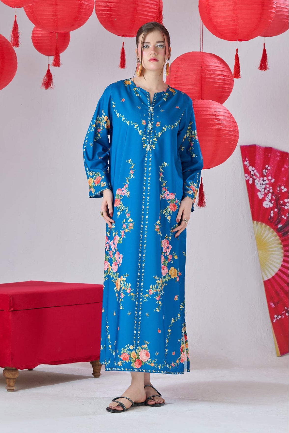 • Two-Piece Stitched Kaftan with Trouser