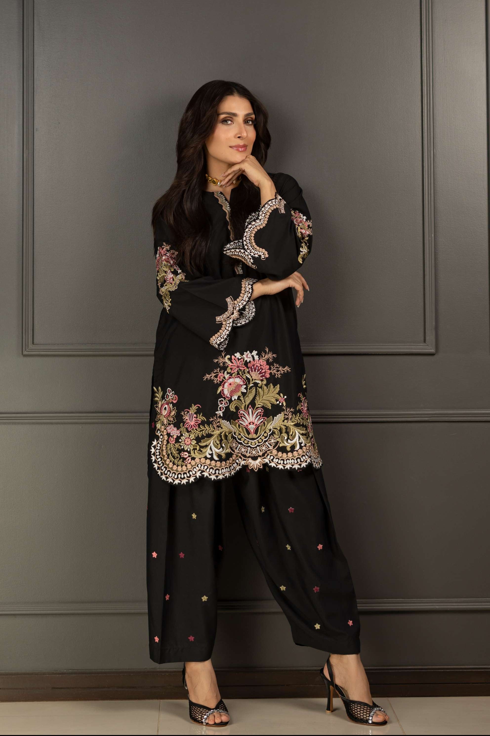 Two Piece Stitched Embroidered Shirt with Shalwar