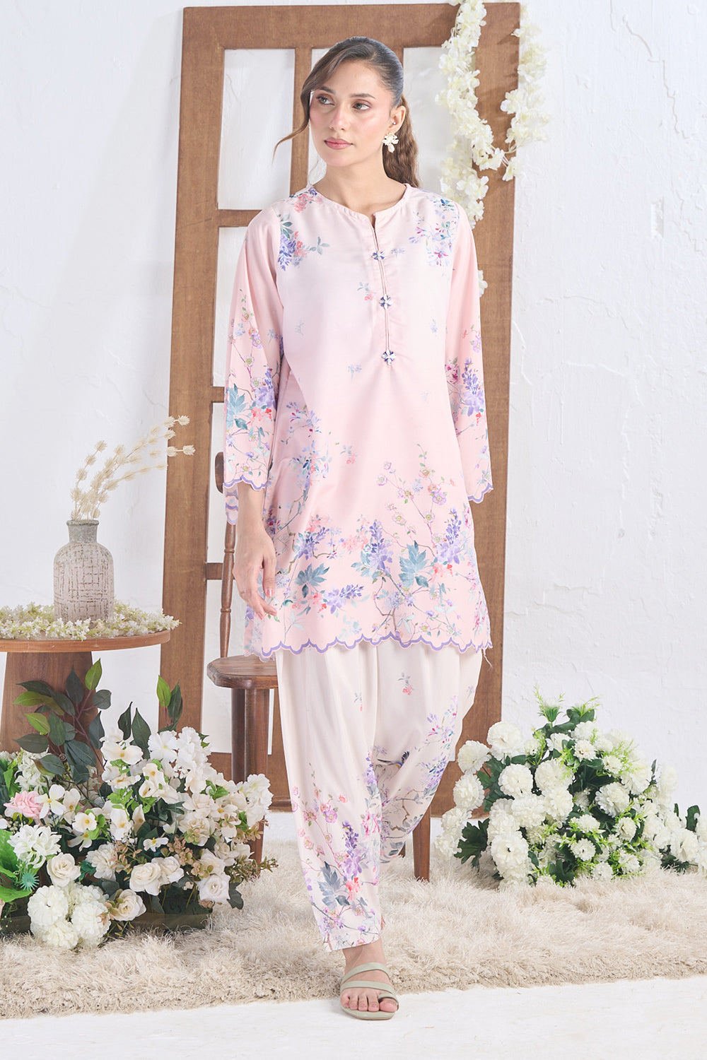 • Two Piece Stitched Shirt with Shalwar