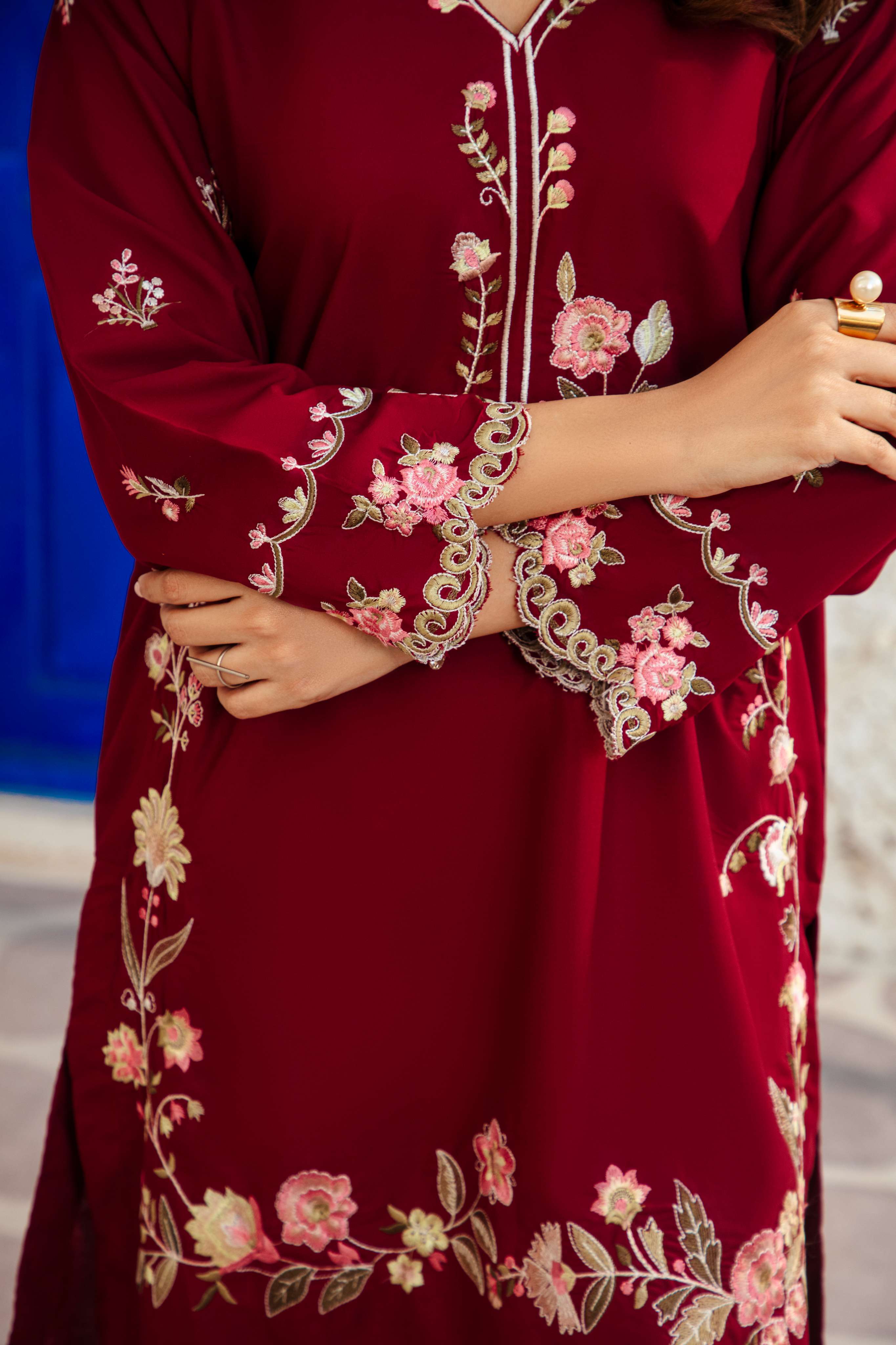 Experience detailed embroidery on smooth blended lawn fabric that feels soft and easy to wear. Made for all-season comfort, it combines simplicity with timeless style