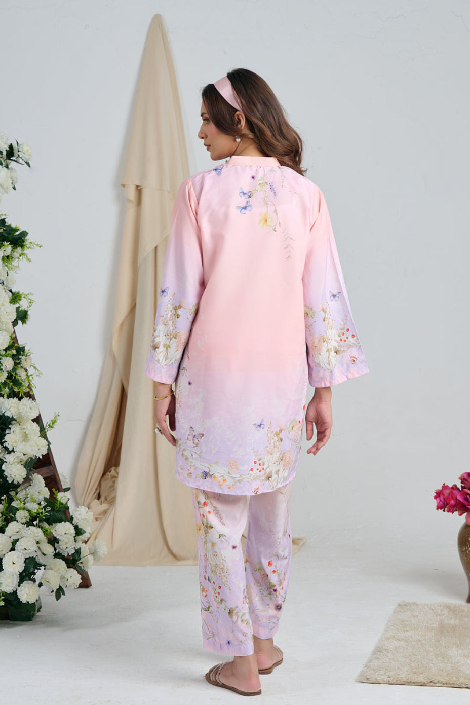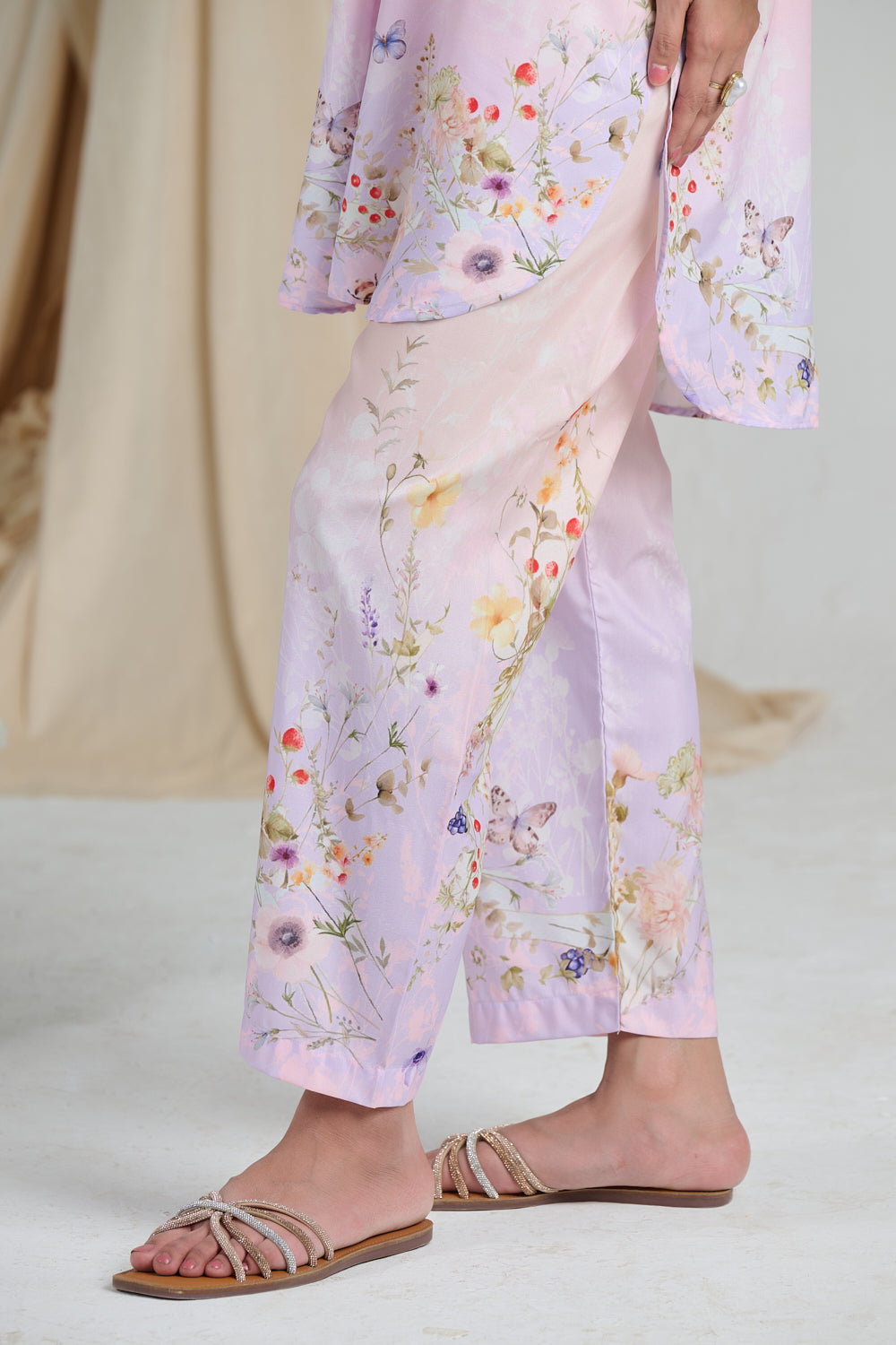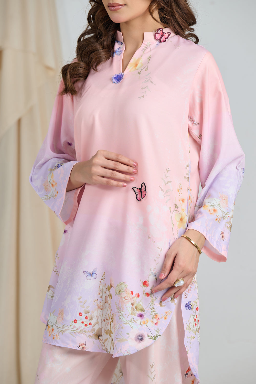 • 3D cutwork Butterflies and Flowers appliqués along the Neckline and Shirt